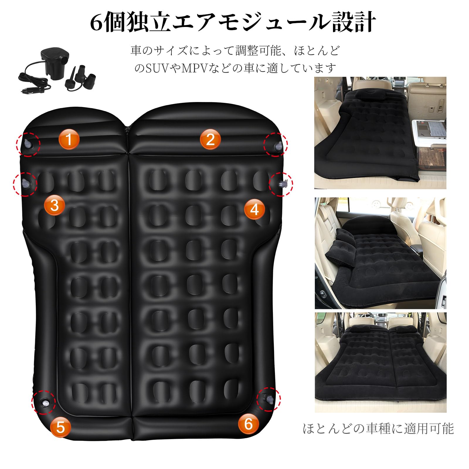 車中泊マット 車載 エアーマット 約10CM厚さ 車用品 便利グッズ クッション シート カー用品 車内ベッド マットレス トランク 後部座席 折畳み式 車後部座席エアーベッド 枕つき 電気ポンプ と収納袋付き 多用途 車中泊 室内 アウトドア 対応 (ブラック) |