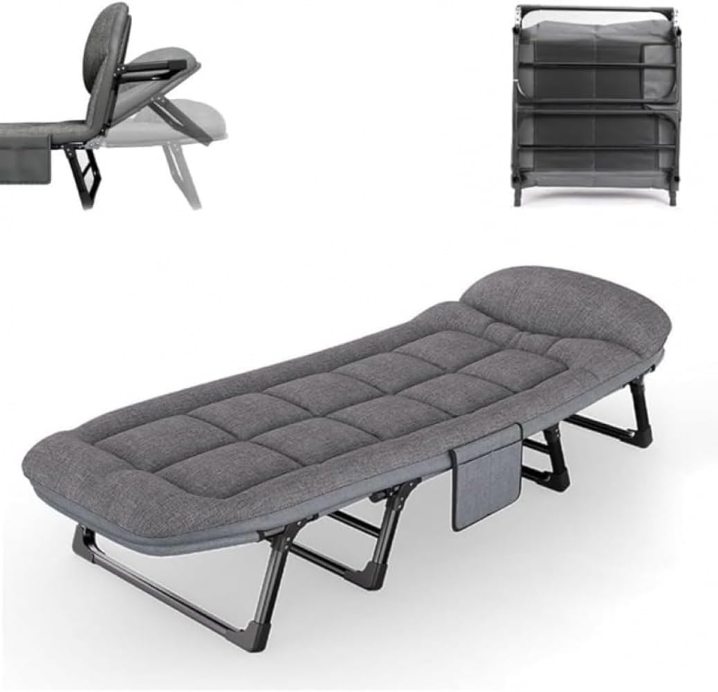 マットレス付き折りたたみ式6段階調節シングルベッド、室内布団乾燥、耐荷重200kg、組み立て簡単、軽量。 |