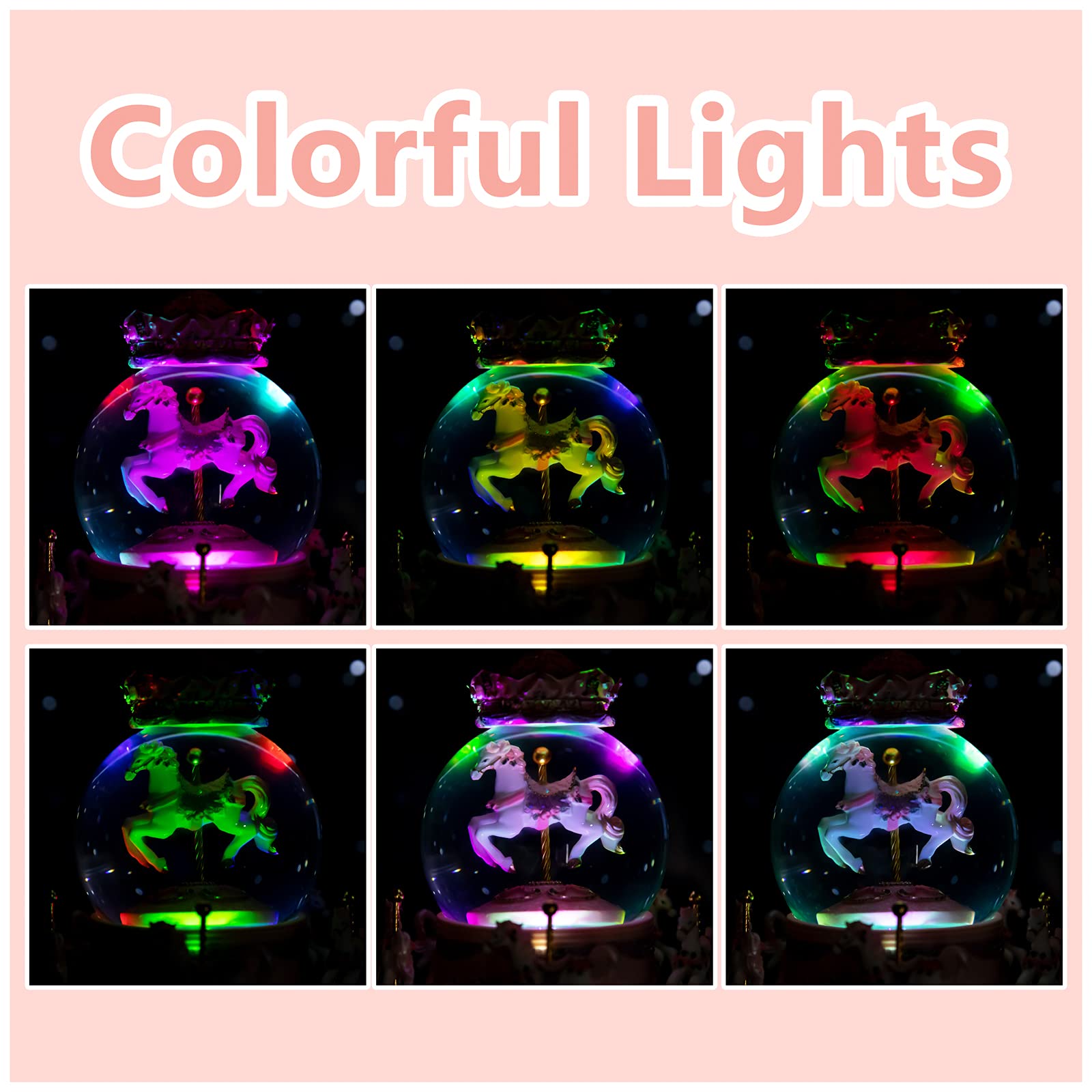 【送料無料】スノードーム オルゴール カラーLEDライト メリーゴーランド クリスタルボール自動降雪 女の子、女性、ガールフレンドへの誕生日、クリスマスプレゼントに人気 |