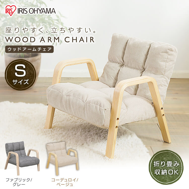 ウッドアームチェア Sサイズ WAC-S ファブリック グレー コーデュロイ ベージュ パーソナルチェア 1人掛け 腰かけ リビングチェア ウッド アーム 椅子 座椅子 アイリスオーヤマ |