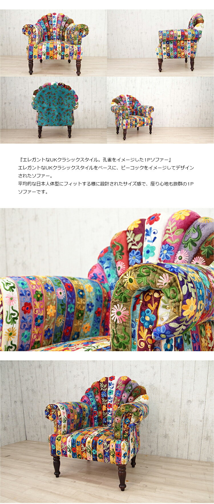 【レビューでプレゼント】DLD801FR ON&ON ピーコック チェアー 椅子 ソファー 1P 一人掛け パーソナルチェア パッチワーク ベルベット Tacky (タッキー) ミッドセンチュリー UK クラシック ボヘミアン おしゃれ |