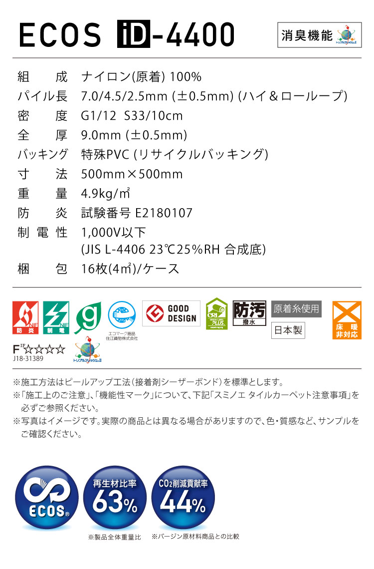スミノエ タイルカーペット ECOS iD シリーズ iD-4400 MEDITATION iD-4401 iD-4402 50×50 50cm角 パネルカーペット グラデーション |