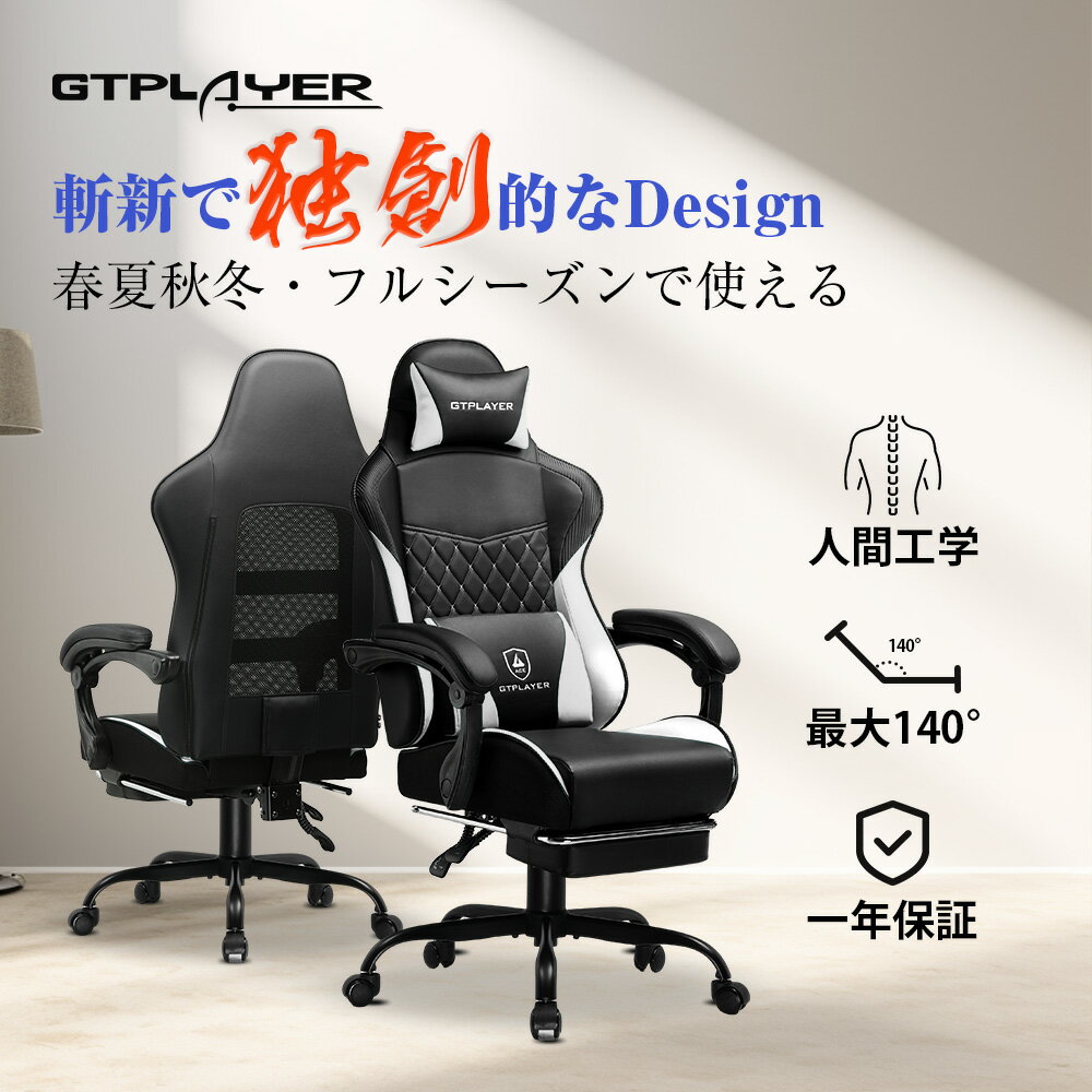 \早いもの勝!売り尽くしセール中!!/GTPLAYER ゲーミングチェア オットマン付き オフィスチェア パソコンチェア デスクチェア リクライニング ハイバック PCチェア チェア 椅子 イス チェアー いす カバー取り外し おしゃれ フットレスト 肘付き 在宅勤 務腰痛対策 黒 白 |
