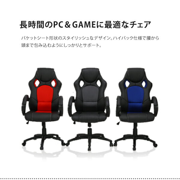 ゲーミングチェア レーシングチェア オフィスチェアー チェア リクライニングチェア キャスター付き 幅58cm ハイバック ブルー レッド オレンジ グレー 選べる4色 ブラック 黒 椅子 デスクチェア パソコンチェア 座面 合皮 メッシュ 肘置き付き おしゃれ モダン 送料無料 |