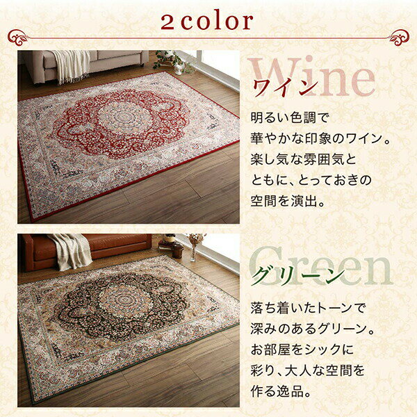 ラグ 絨毯 2畳 大 じゅうたん 200×200cm ペルシャ 柄 カーペット 正方形 直輸入! トルコ 絨毯 ホットカーペットカバー対応 グリーン レッド 赤 ウィルトン織 ラグマット |