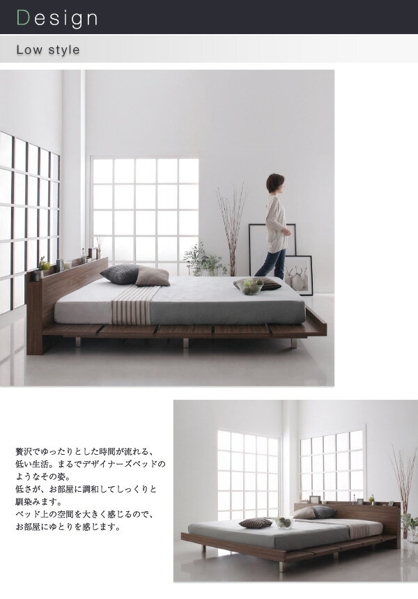 (送料無料) ローベッド クイーン ベッドフレーム マットレス付き マットレスセット ローベット フロアベッド フランクリン【プレミアムポケットコイルマットレス付き】ナローステージレイアウト マットレス(140cm)ベッド ベット 木製 棚付き 宮付き コンセント付き 低い |