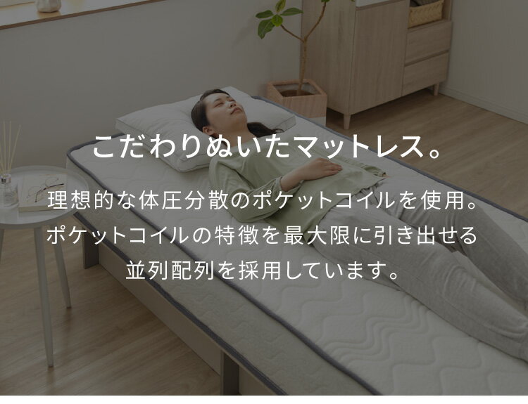 マットレス シングル ポケットコイル 寝心地 ホワイト 白 ロール梱包片面仕様ポケットコイルマットレス Sheera-シェエラ |