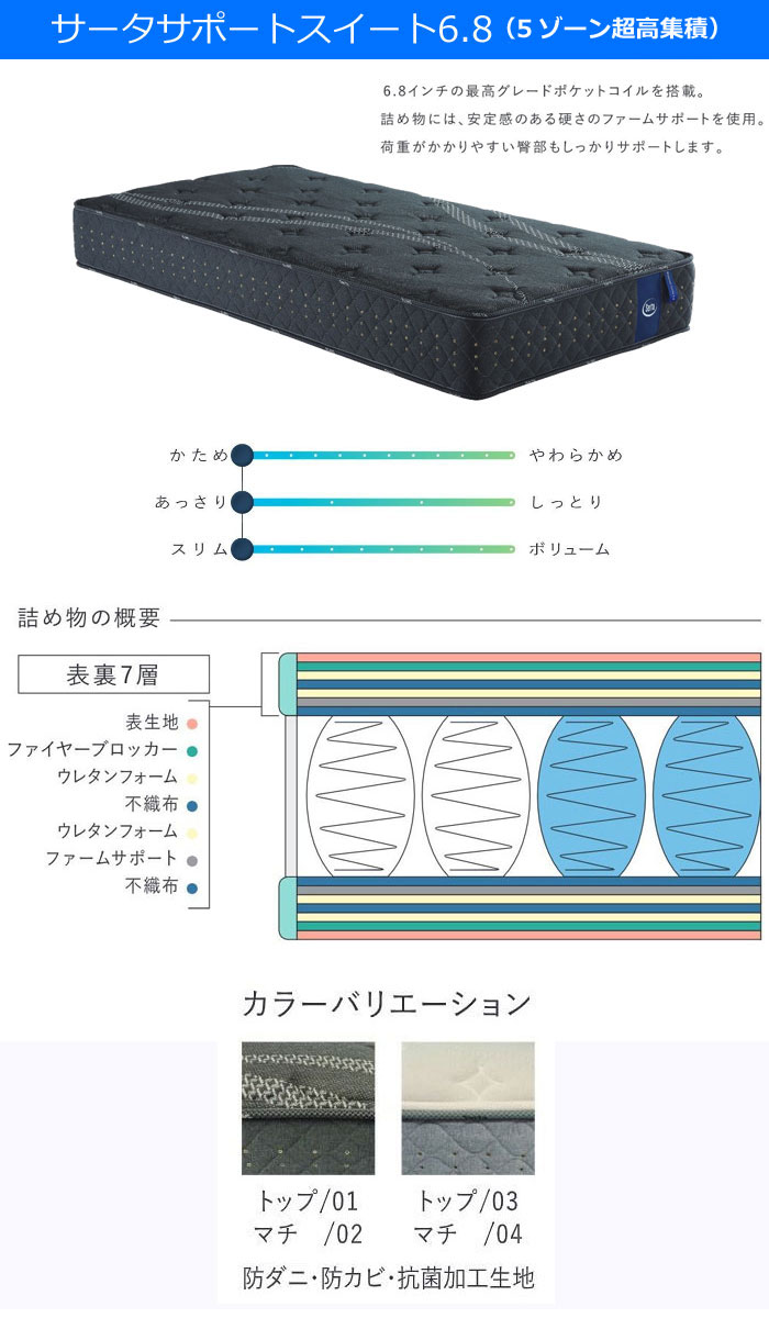 【ポイント20倍】サータベッド サータサポートスイート6.8 マットレス 6.8ポケットコイル 交互配列 ファームサポート パーソナルシングル セミダブル ダブル クイーン1 日本製 |