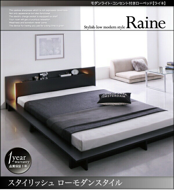 【エントリーでP10倍!クーポン有!スーパーSALE】モダンライト・コンセント付きローベッド スタンダードポケットコイルマットレス付き ダブル |