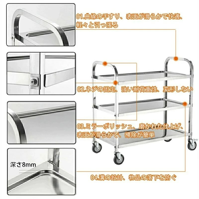 ステンレス ワゴン 配膳ワゴン キッチンカート キッチンワゴン 3段 サービスワゴン ワゴン サービスカート 配膳車 サービスワゴン キャスター付き ブレーキ付き 移動便利 業務用 キッチンワゴン |