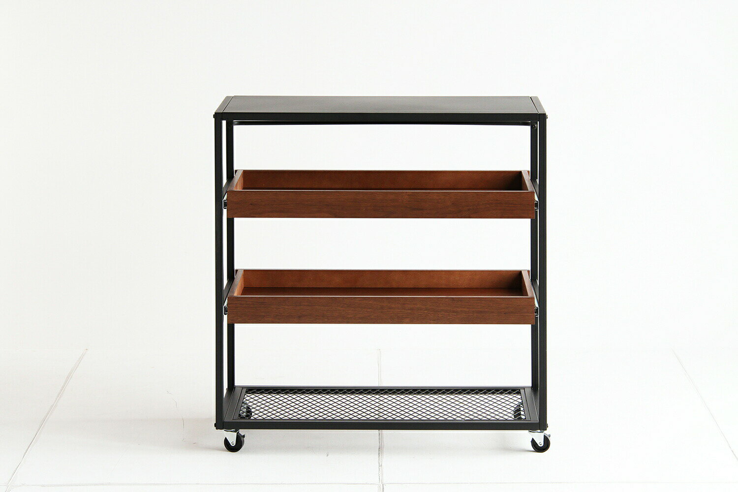 キャスター付き折りたたみキッチンワゴン使わない時は収納楽々ホワイト ブラック ダークブラウン シルバーリビングやキッチンのちょっとした物置に狭い台所のお料理を一時避けお料理をテーブルまでの一気に運んでくれるキッチンカート 台車 |