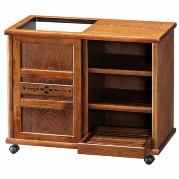 ポットワゴン 和風 和室 お座敷ワゴン キャスター付き リビングワゴン 完成品 和室ワゴン 欅色 高級 日本製 国産 古民家家具 秋草 |