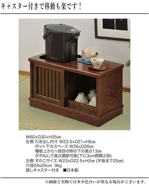 お座敷ワゴン ポットワゴン 和風 ケヤキ色 幅60cm |