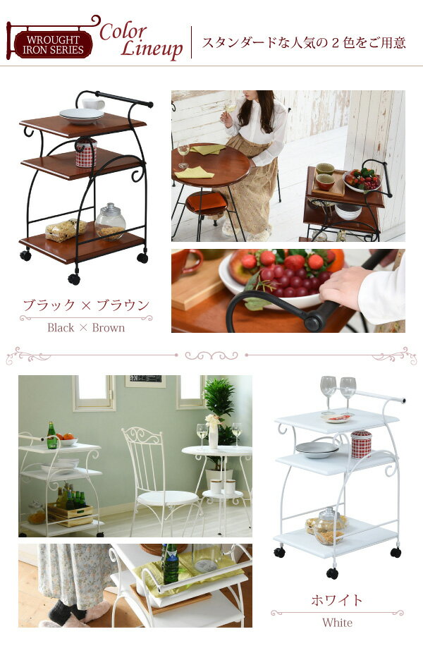 アンティーク調 キッチンワゴン 幅41.5cm キッチンラック キャスター付き ラック ワゴン ポットワゴン レンジワゴン 食器ワゴン キッチン 収納 ロートアイアン 木製 フェミニン おしゃれ IRI-0054 2色対応 わくわくランド |