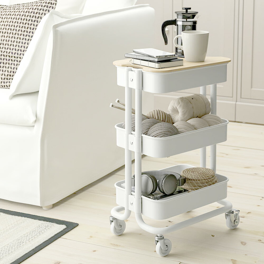 アイリスオーヤマ ウッドトップメタルポールワゴン スリム MKW-WT3S ホワイト/ビーチ |