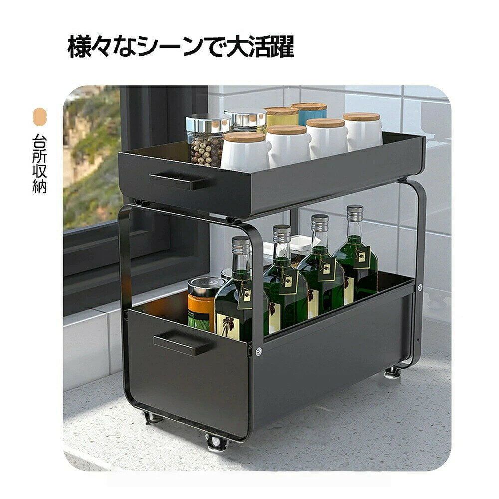 キッチン収納 シンク下 スライドラック 2段 幅25.2cm 引き出し式 ワイド キッチンラック シンク下収納 コンロ下収納 台所収納【ブラック/ホワイト サイズ40x25.2x40.5cm】 |