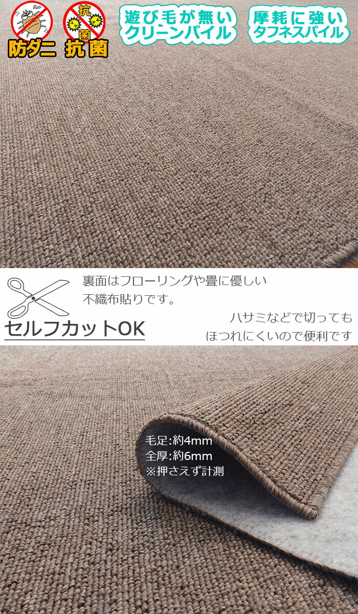 カーペット ラグ 国産 6畳 261×352cm 江戸間 オールシーズン 防ダニ 抗菌 ラグマット ホットカーペット対応 無地 喉に優しい クリーン 摩擦に強い 床暖対応 フリーカット アイコン 寒さ対策 六畳 【九州/北海道/沖縄追加送料有】 / ループ / |