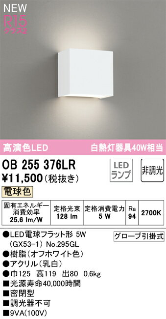 ★OB255376LRLEDブラケットライト R15高演色 クラス2電球色 非調光 白熱灯器具40W相当オーデリック 照明器具 壁付け |