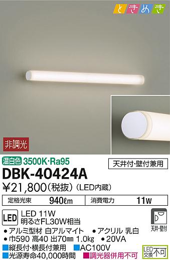 DBK-40424ALEDブラケットライト ミラーライト ときめきLED交換不可 天井付・壁付兼用温白色 非調光 FL30W相当大光電機 照明器具 洗面所 化粧台用 |