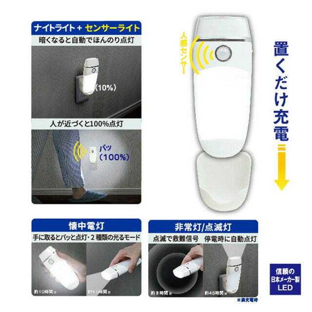 充電式 LED壁ホタル AL-300 (階段 人感センサー 照明 自動 点灯 消灯 防犯 廊下 ライト 屋内 置き型 配線不要 手持ち 室内 テント フット 玄関 クローゼット ルームランプ 足元 ベランダ 物干し 停電 エコ 懐中電灯 防災 人感 勝手口) |