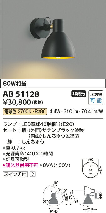 コイズミ照明 AB54636 LEDコンパクトブラケットライト 上下面カバー付 コーナー取付 白熱球60W相当 調光可 電球色 照明器具 壁付け |