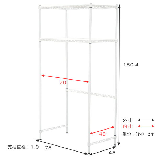 ランドリーラック 洗濯機上ラック スチール製 脚アジャスター 約高さ150cm ( 送料無料 ランドリー収納 隙間収納 洗濯機ラック 収納棚 ラック タオル収納 すきま収納 衣類収納 棚 ランドリー 白 ホワイト おしゃれ ) 【39ショップ】 |
