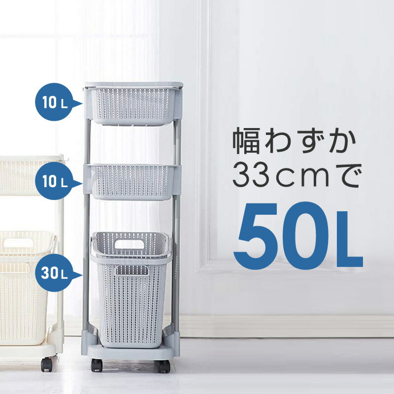 ランドリーバスケット 3段 大容量 洗濯カゴ スリム キャスター おしゃれ 四角 ランドリーラック ランドリー収納 ランドリーチェスト ランドリーワゴン ランドリーボックス かご 隙間収納 縦型 | 大きめ 三段 グレー ベージュ 洗濯かご 角型 |