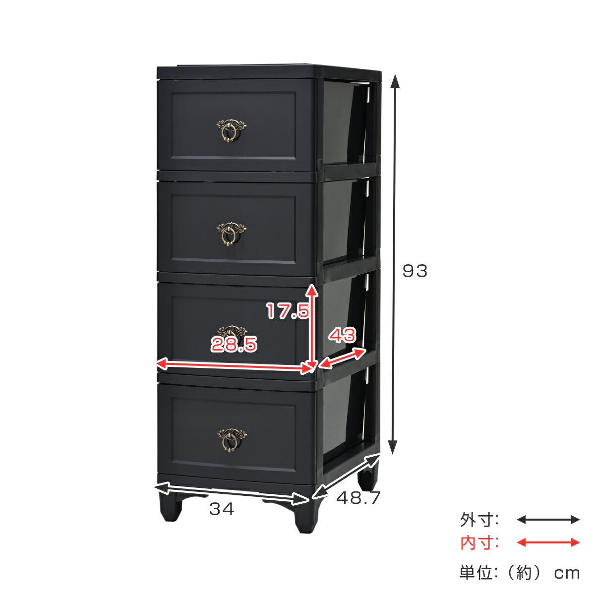 チェスト カドリー 4段 ( 収納ケース タンス 引き出し プラスチック 幅34 奥行48.7 高さ93 日本製 軽量 衣装ケース リビング収納 ランドリーチェスト 衣類収納 脚付き 脚 洗面所 リビング 小物収納 おしゃれ ) 【3980円以上送料無料】 |
