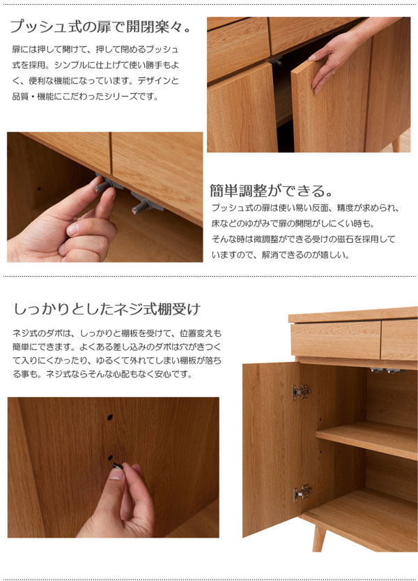 キャビネット リビングキャビネット プッシュ式扉 リビング収納 幅110cm 北欧 ヴィンテージ 天然木脚 日本製 完成品 Solid ソリッド ナチュラル NK04-015NA-NS |