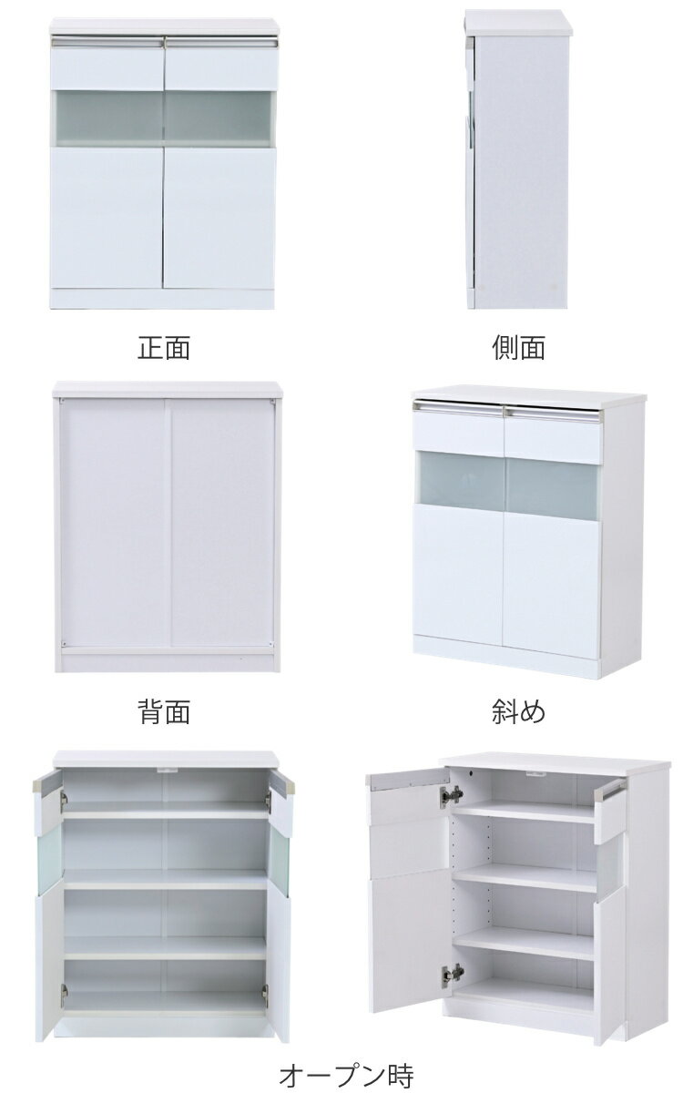カウンター下収納 開き戸 キャビネット 鏡面前板 幅60cm ( カウンター下 収納 本棚 棚 リビング収納 間仕切り カウンター カップボード リビング 引き出し シンプル ホワイト ) |
