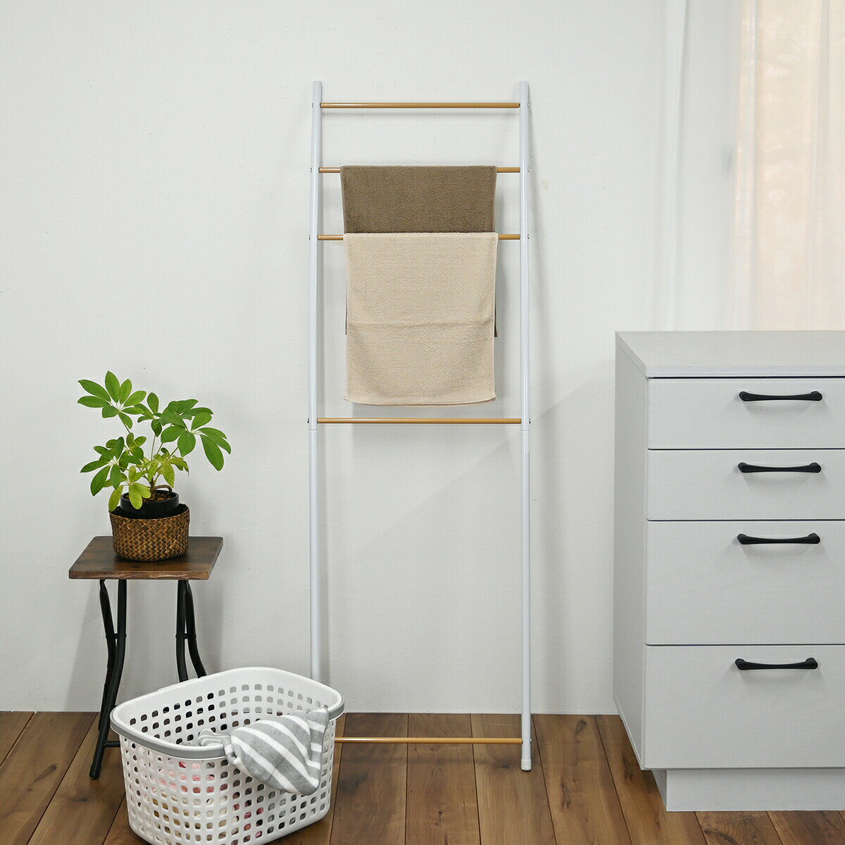 最大2000円OFFクーポン配布中 01/29(木)00:00〜 タオルスタンド 幅47.5cm はしごラック タオルハンガー ハンガーラック おしゃれ ラダーハンガー はしご型ラック 引っ掛け 収納 見せる収納 玄関収納 リビング収納 少量 洗濯干し |