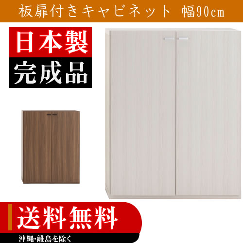 キャビネット 幅90 収納家具 007: キャビネット 扉付き 木製 ウォールナット ホワイト 白 リビング収納 棚 送料無料 K-Style |