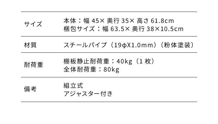 オープンラック ラック 3段 耐荷重80kg 幅45cm 奥行35cm スチールラック アジャスター付きシンプル キッチン収納 リビング収納 シェルフ 三段(代引不可)【送料無料】 |