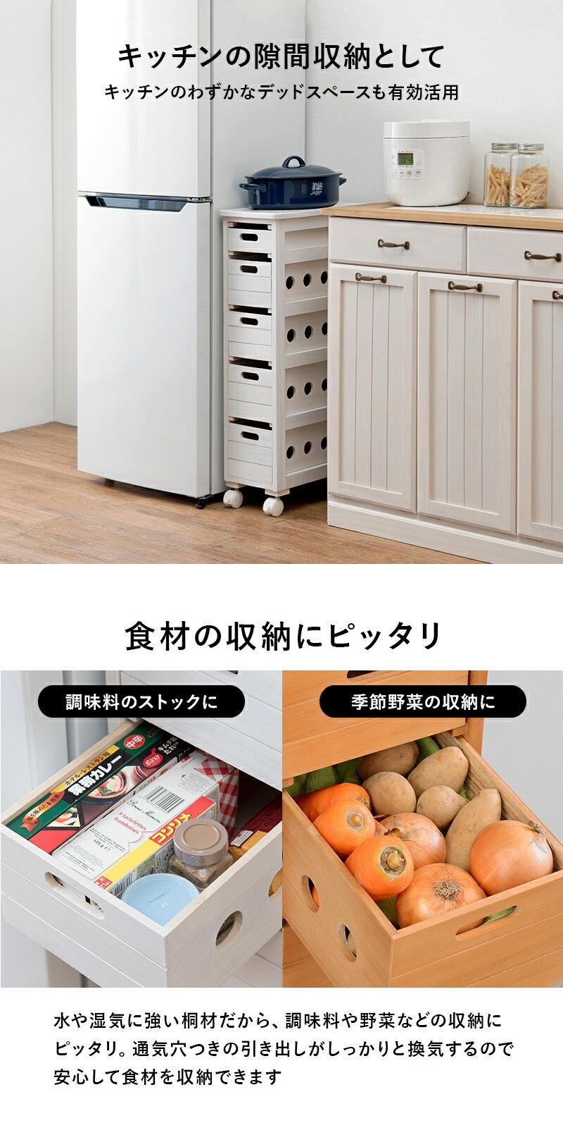 キッチンストッカー キャスター付き 幅20cm キッチン 隙間収納 収納棚 省スペース おしゃれ ナチュラル ホワイトウォッシュ ブラウン スリム 野菜ストッカー 桐 キッチン収納 台所収納 ランドリー収納 リビング収納 サニタリー収納 洋服収納 木製 すきま収納 |