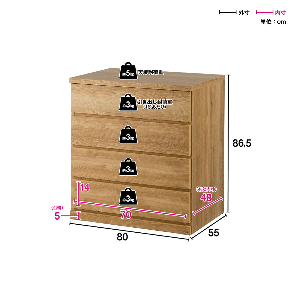 【クーポン10%OFF 1/30迄】 隠しキャスター付きチェスト 4段・高さ86.5cm幅80cm奥行55cm リビング リビング収納 590137 \LINE友だち登録でクーポン/ |