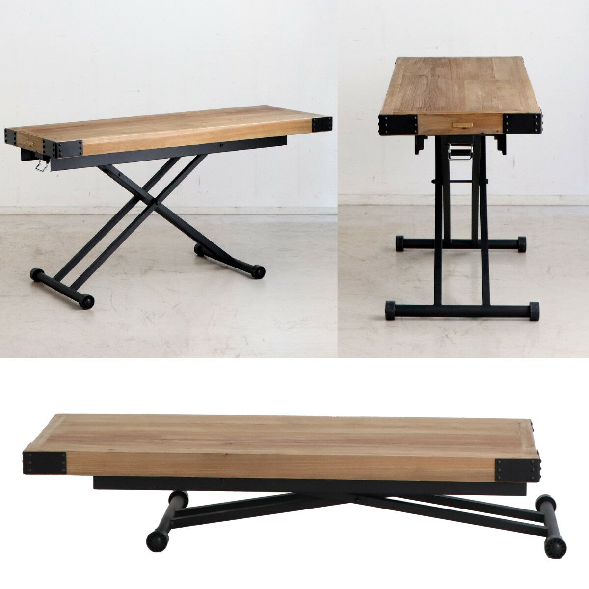 昇降テーブル リフティングテーブル ローテーブル センターテーブル リビングテーブル ソファテーブル 高さ調節 無段階 レバー式 おしゃれ ヴィンテージ調 キャスター付き 車輪付き 天然木 無垢材 幅140cm ワイド |