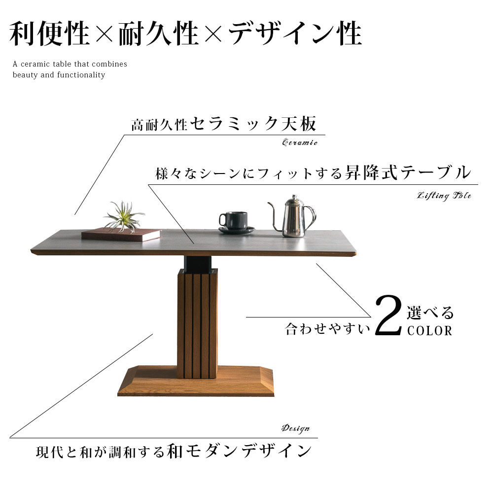 半額対象商品 昇降テーブル セラミック 幅 120 小さめ 和モダン ダイニング センターテーブル リフティングテーブル 昇降式 単品 120テーブル 無段階昇降 1本脚 石目調 北欧 和モダン 高さ調節 4人 2人 作業台 木目調 毎日がアウトレット価格 |