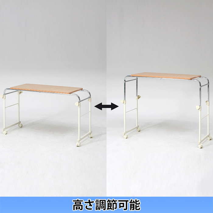 ベッドテーブル BT-302 ホワイト 高さ調節可能 ベッド用テーブル リフティングテーブル 昇降式 補助テーブル 介護テーブル ベッドサイド リビングテーブル PCデスク 作業デスク センターテーブル ウッド調 キャスター付き 高さ67cm〜102cm |