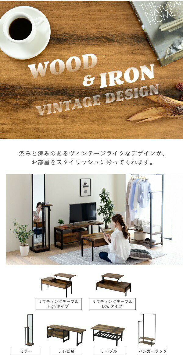 昇降テーブル リフティングテーブル ローテーブル センターテーブル リビングテーブル ソファテーブル 高さ調節 無段階 レバー式 おしゃれ ヴィンテージ調 キャスター付き 車輪付き 天然木 無垢材 幅110cm |