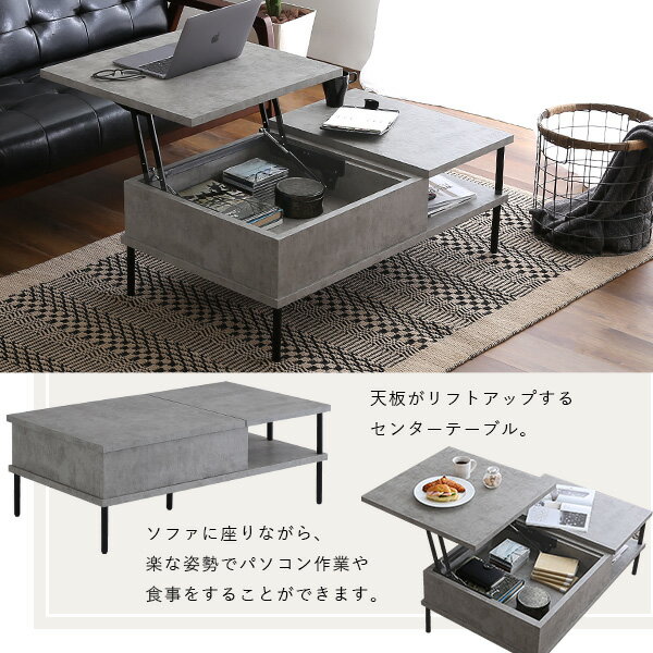 コンクリート調 リフティングセンターテーブル センターテーブル リフティングテーブル リフト ワーキング モダン 収納 コンクリート おしゃれ(代引不可)【送料無料】 |