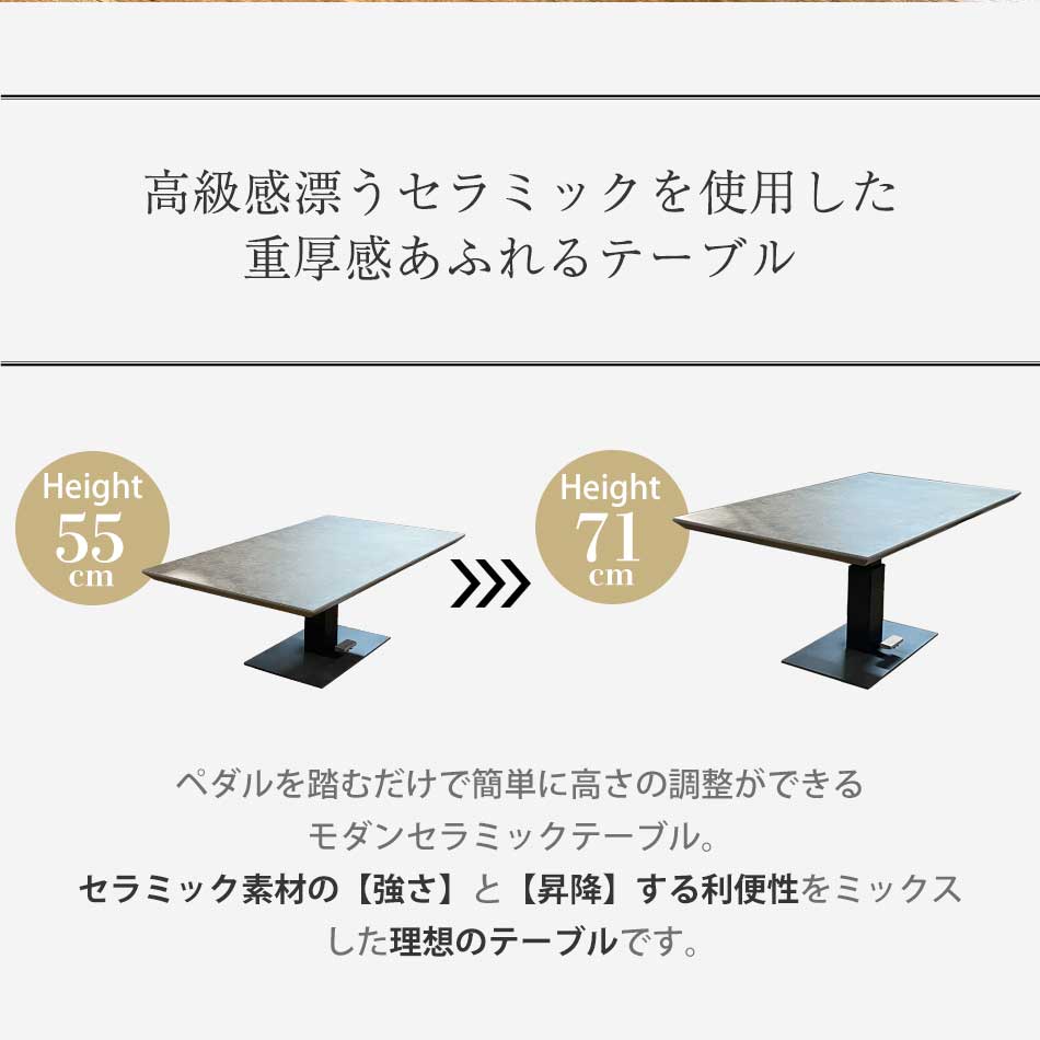 [半額品] +12/4 20:00〜 5%OFFクーポン配布 【開梱設置無料】 ダイニングテーブル 昇降 セラミック 天板 150cm幅 長方形 ペダル昇降式 高さ調節 リフティングテーブル センターテーブル リビングテーブル グレー おしゃれ モダン 無段階昇降 昇降テーブ |