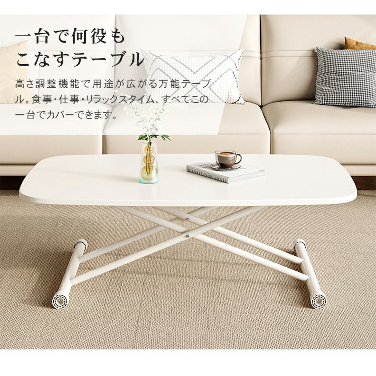 【おすすめ・人気】センターテーブル 約幅100cm ホワイトウォッシュ 高さ5段階調節 スチール リフティングテーブル 昇降式テーブル リビング【代引不可】|安い 激安 格安 |