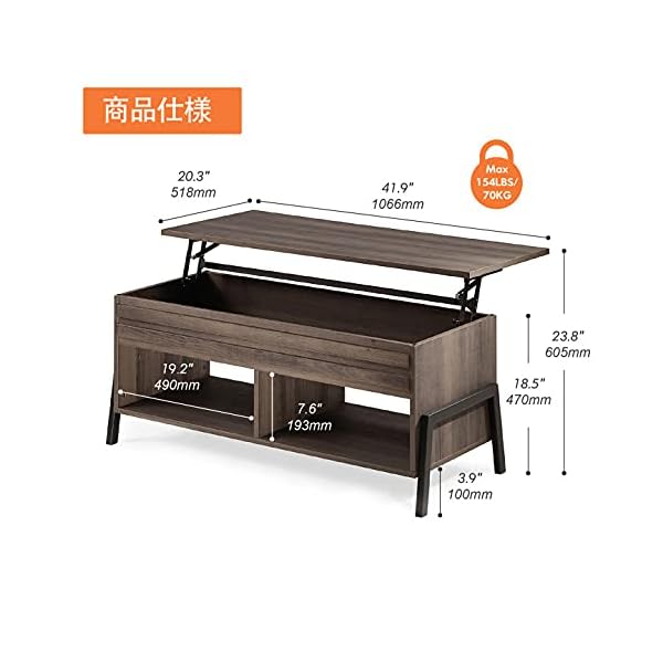 【送料無料】ローテーブル 昇降式 リビングテーブル 広く昇降式天板 幅106.6cm センターテーブル大容量収納空間 リフティングテーブル おしゃれ 中世のスタイル |