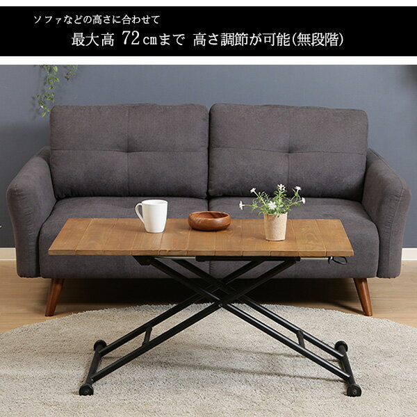 【ポイント最大10倍★12/4 20時〜12/5限定】ヴィンテージ風ガス圧式昇降テーブル(テーブル 昇降式 おしゃれ 昇降テーブル センターテーブル 昇降 ローテーブル 無段階 高さ調節 ハイテーブル 机 折りたたみ デスク リフティングテーブル 折りた |