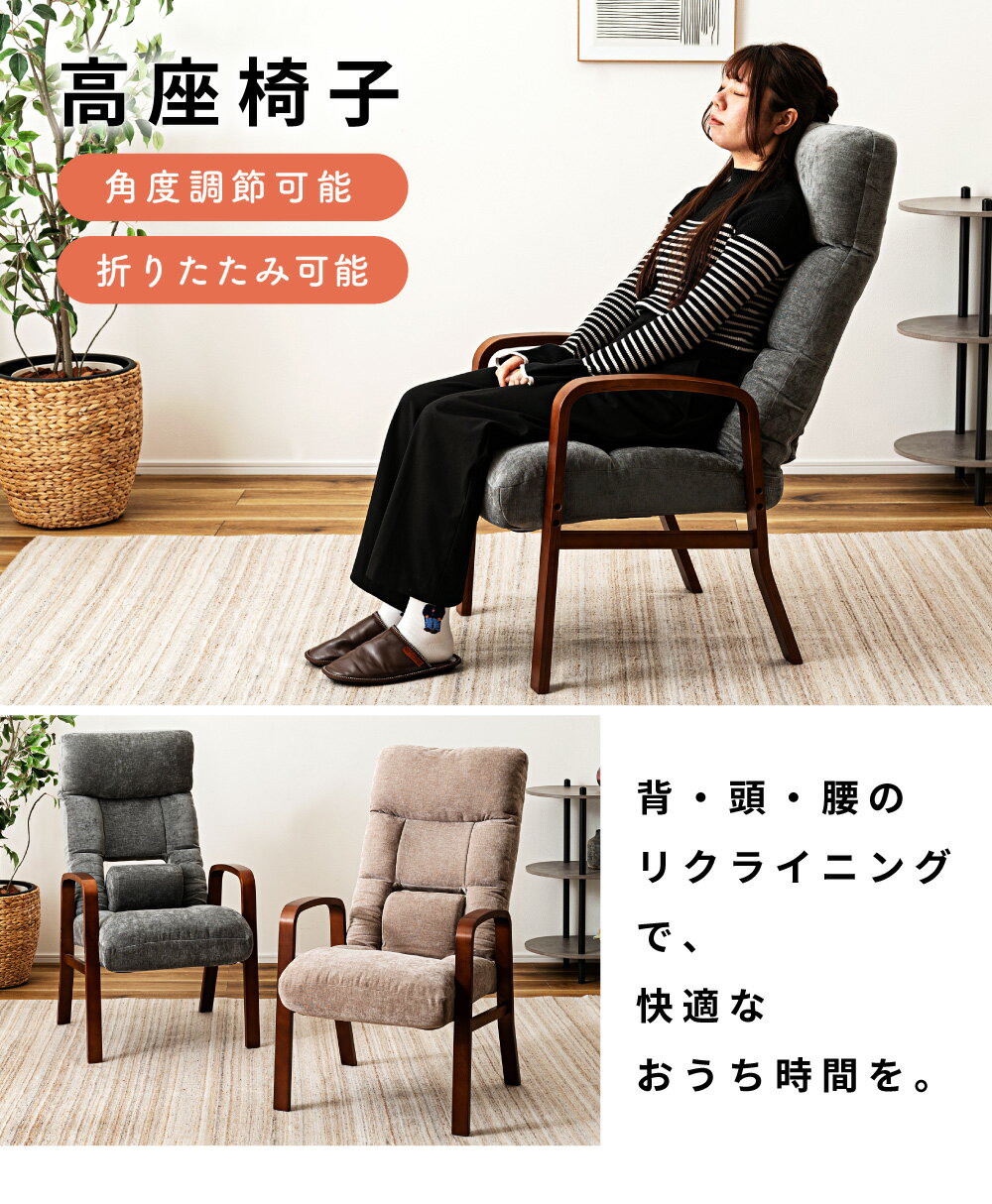 高座椅子 高齢者 リクライニング 肘掛 疲れにくい 座面高36〜45cm ( リクライニングチェア 一人用 リラックス チェア ソファ 椅子 1人掛け ハイバック 天然木フレーム ファブリック 北欧風 おしゃれ )【3980円以上送料無料】 |