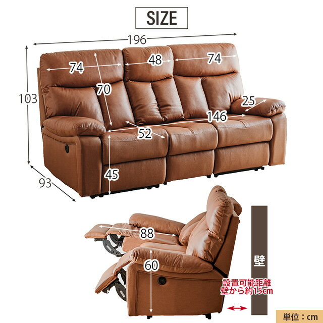 ソファ 3人掛け 北欧 おしゃれ 2分割 電動 おしゃれソファー リビングソファー 3人掛けソファ ソファー おしゃれ リクライニングソファー 電動ソファー ファブリックレザー ヘッドリクライニング 電動リクライニング キャメル 【送料無料/組立・設置付】GB-INTE-0399 |