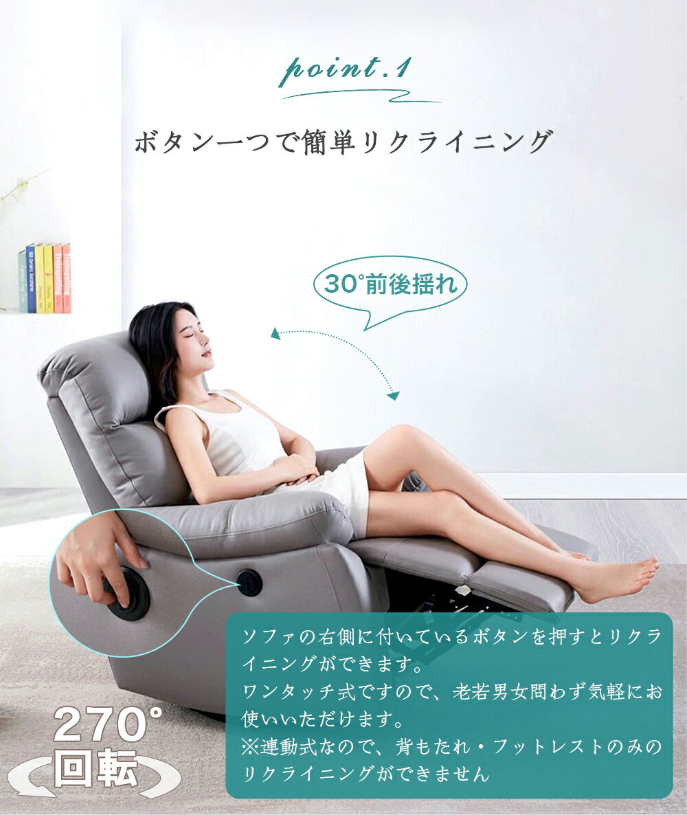 【収納できるサイドテーブル】リクライニングソファ リクライニングソファ 140°調整 PUレザー 1人掛け 電動 リクライニング オットマン一体型 パーソナルソファ 電動ソファ 耐圧分散 一人暮らし 一人掛け リラックス ギフト |