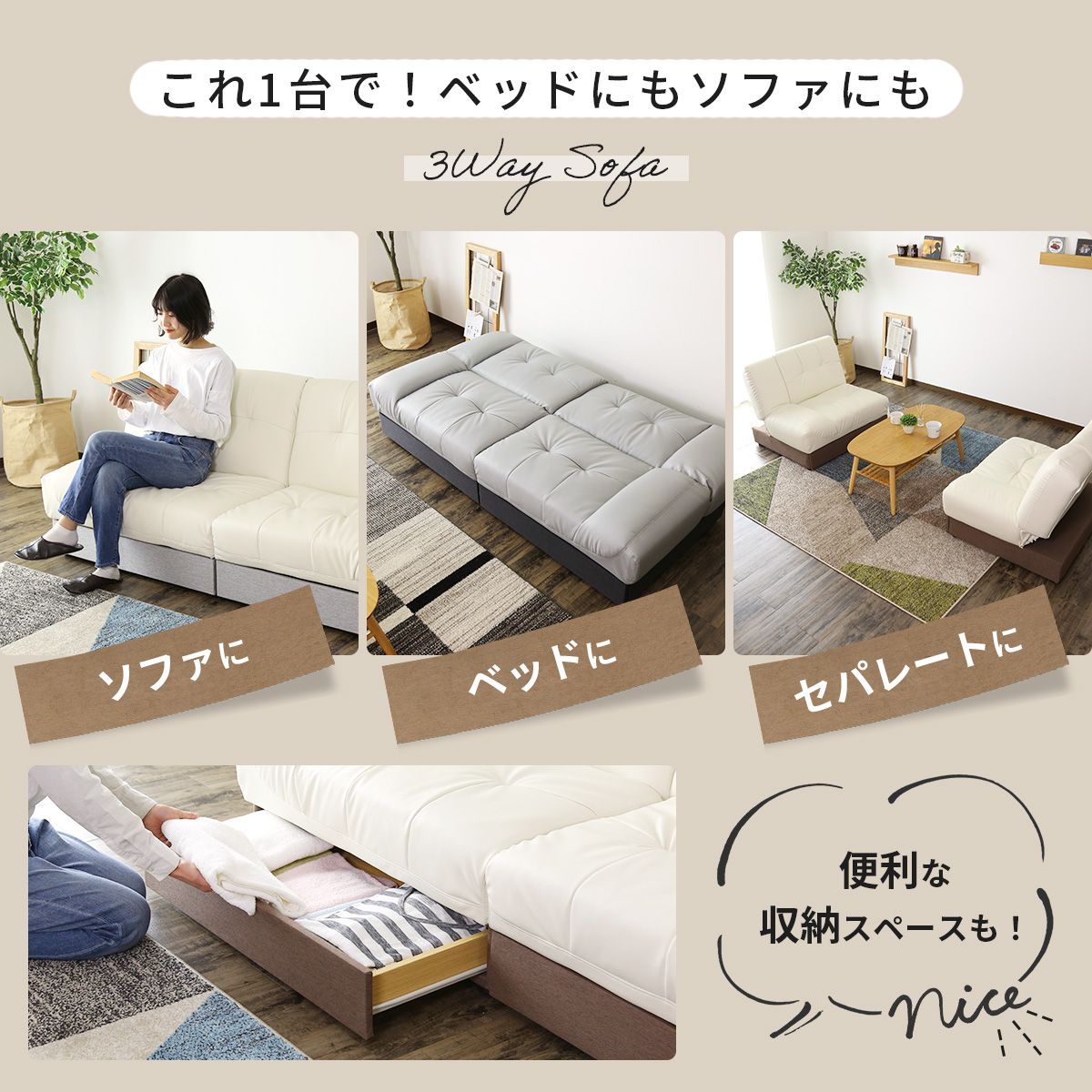 ソファーベッド 2人掛け ソファベッド 3WAY 14段階リクライニング 日本製 幅90cm 幅120cm リクライニングソファー3WAYリクライニングソファー ソファー 完成品 国産 ファミリー 一人くらし ゆったり 来客用 リビング ニッセン nissen |