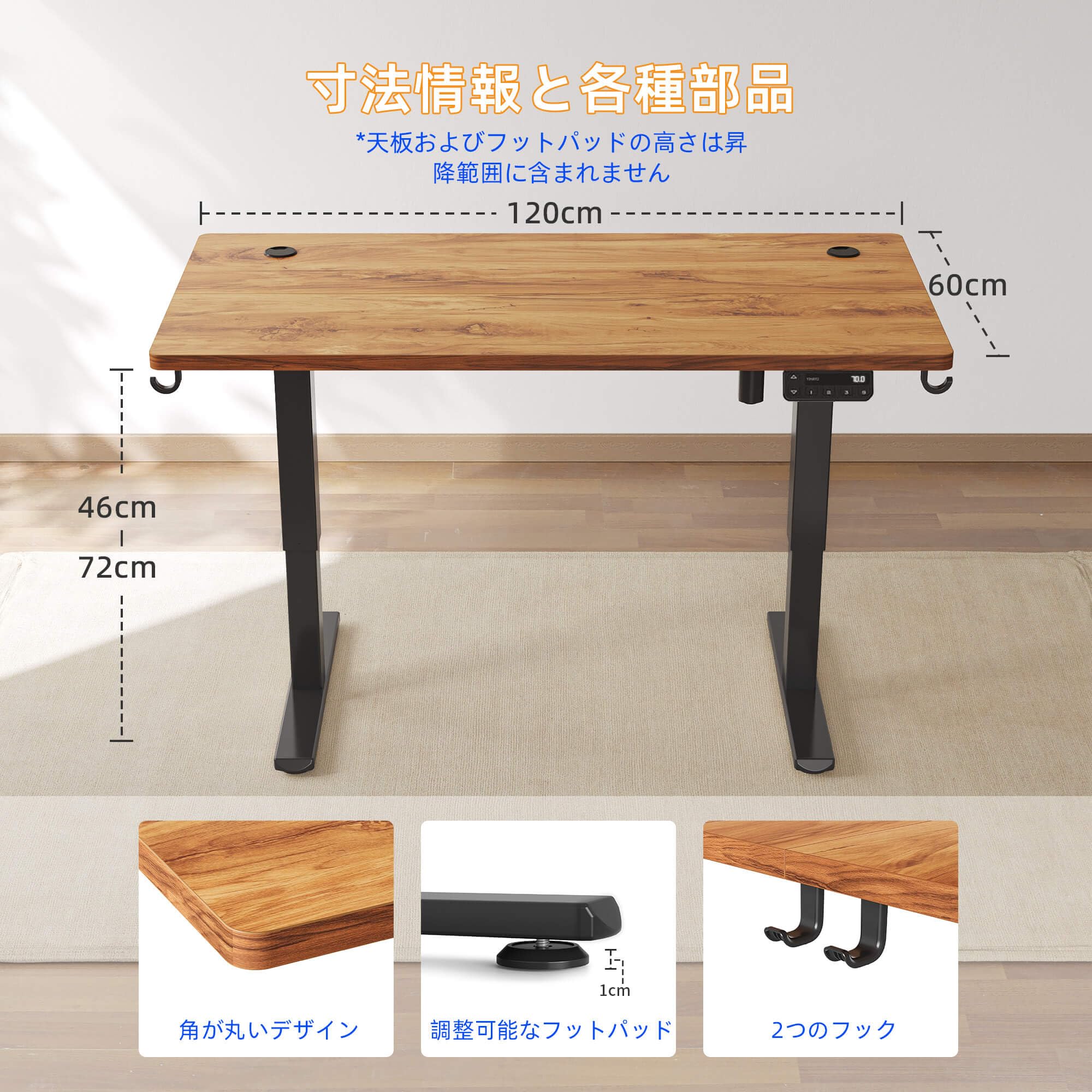 YIHAYO ローデスク 高さ46-72cm 昇降デスク 幅120cm 奥行き60cm 電動 ゲーミングデスク 昇降式デスク 高さメモリー機能 上下昇降デスク 静音 収納フック付き 組み立て簡単 ローテーブル パソコンデスク (ブラウン) |