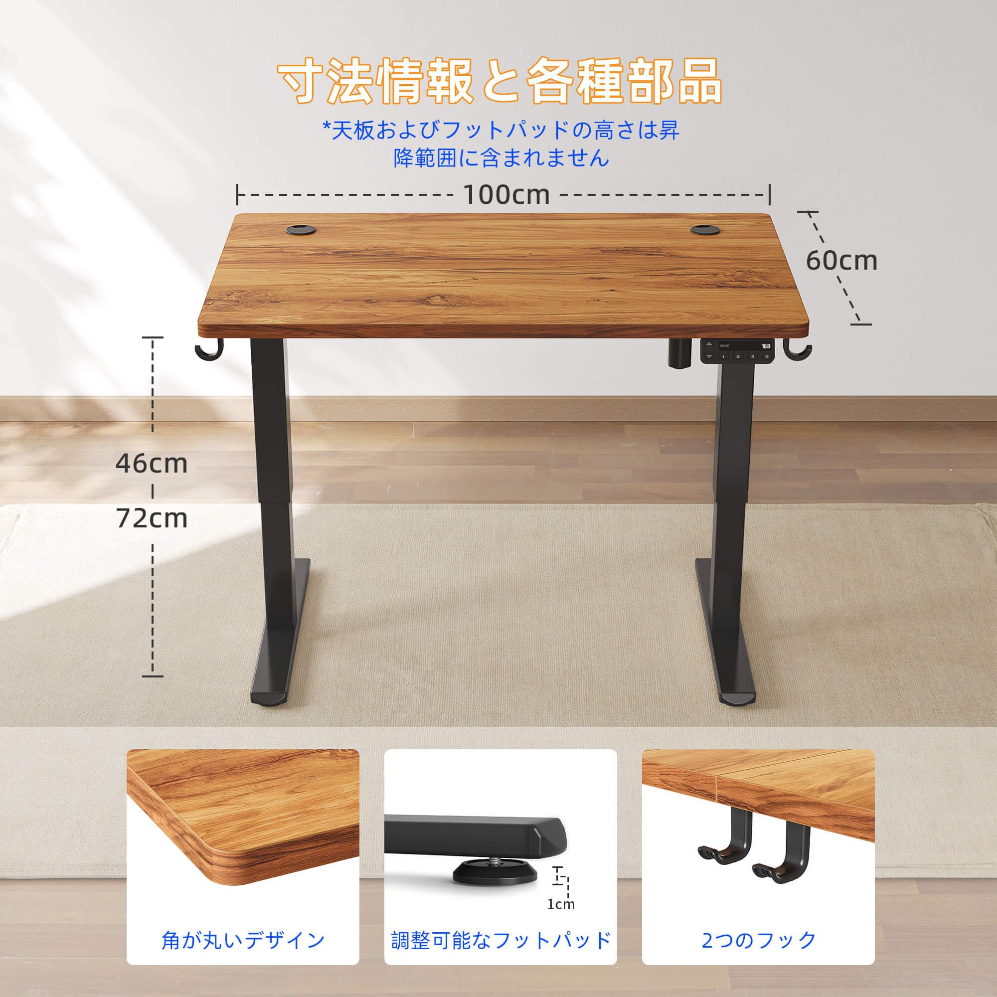 YIHAYO ローデスク 高さ46-72cm 昇降デスク 幅100cm 奥行き60cm ゲーミングデスク 電動 昇降式デスク 高さメモリー機能 静音 収納フック付き 組み立て簡単 ローテーブル (ブラウン) |